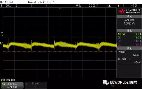 注:移動(dòng)電源的開(kāi)關(guān)頻率明顯比前面的充電器高很多 “終結(jié)者”移動(dòng)電源 快充口 1A 帶載波形
