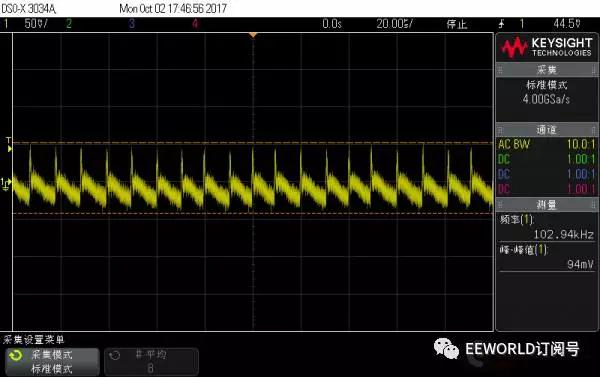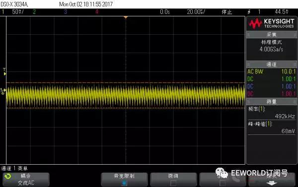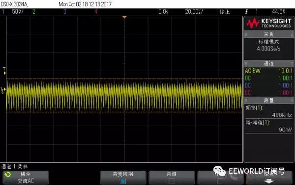 先說(shuō)說(shuō)測(cè)試之前的預(yù)期或者認(rèn)識(shí): Anker 的新款能賣這么貴,毫無(wú)疑問(wèn)紋波比老款控制的好; 蘋果的充電器是目前較常用的,覺(jué)著能賣這么貴,質(zhì)量自然是不錯(cuò)的; 黑色的 Bigben,是在淘寶上買的,說(shuō)是英國(guó)貨,但google到的資料很少,的幾條記錄都是指向國(guó)內(nèi)的淘寶...這個(gè)充電頭質(zhì)量還行,原來(lái)試過(guò)同時(shí)給ipad和充電寶充電,3.4A也是妥妥的!但是有“蜂鳴聲”:手機(jī)充滿了,電源輕載就有蜂鳴聲;聲音微弱,不過(guò)留意聽(tīng)還是可以聽(tīng)到的;甚至,空載的時(shí)候從插座拔下來(lái),把它放到耳邊,能清楚的聽(tīng)到蜂鳴聲過(guò)一段時(shí)間才消失;本以為是個(gè)別現(xiàn)象,后來(lái)又買了一個(gè)還是同樣的問(wèn)題?。?!這個(gè)“蜂鳴聲”本不大,但是一旦聽(tīng)到就沒(méi)法忽略,遂閑置很少再用 堅(jiān)果pro的18W充電器,試過(guò)給堅(jiān)果手機(jī)充電,快充支持的很好,但是帶兩個(gè)充電頭不方便,也很少用 “終結(jié)者”移動(dòng)電源是我親見(jiàn)過(guò)較強(qiáng)大的移動(dòng)電源,QC3.0輸入、輸出,甚至支持一些筆記本適配器直接充電,也可以給ipad 2.4A充電,其他的電壓、電流、溫度、氣壓計(jì)、電子羅盤...應(yīng)有盡有!這個(gè)是我的出差必備 廢話不再多說(shuō),下面開(kāi)始上圖 測(cè)試條件 負(fù)載:1A 測(cè)試時(shí)僅采用1個(gè)4.7Ω功率電阻,2A 測(cè)試時(shí)在前者基礎(chǔ)上并聯(lián) 4Ω 電阻 (考慮導(dǎo)線壓降,實(shí)際電流分別為大于0.9A,和大于1.9A) 示波器:交流耦合,20us/div , 50mV/div, 20M 帶寬限制,1:10衰減探頭 下面正式開(kāi)始測(cè)試 PS. 由于是負(fù)載端直接測(cè)量,測(cè)量結(jié)果可能沒(méi)法和正規(guī)測(cè)試相對(duì)比,在這里僅做個(gè)橫向?qū)Ρ?br /> Anker 新款 充電器 1A 帶載波形