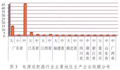 | 電源適配器(poweradapter)指的是選購電子設備時配備的配件裝置或單獨選購的可用于部分家用電器充電的電子設備。總體來說,它是一種電子配件設備,主要作用是將交流電轉換為低壓直流的裝置。電源適配器廣泛運用于配套的安防攝像頭、機頂盒、手機、平板電腦、照相機、筆記本電腦等電器。 電源適配器按工作原理主要可分為兩種:開關電源和線性電源;按主要用途 可分為音頻系統類電源適配器(用于音箱)、信息技術類電源適配器(用于筆記本電腦)、電信終端類電源適配器(用于手機);按充電時間可分為普通充電器和快速充電器。這其中,音頻系統類電源適配器、信息技術類電源適配器和電信終端類電源適配器均在強制性產品認證目錄內,分別屬于0907類和0807類。 國內產業分布 電源適配器屬于CCC國家強制目錄設備,從CCC獲證情況來看,國內電源適配器生產廠家主要分布在沿海地區和一部分中部地區,以廣東分布較多,約有680家電源適配器廠家,生產廠家總數約占全國總總數的75%左右。目前,國內生產制造加工區域集中分布在珠三角地區,主要是深圳、東莞、惠州、廣州等地;繼而是長三角地區,以江蘇省的蘇州市、無錫市等地為主導;而京津冀(北京、天津、河北)地區的制造加工廠家很少。具體如圖1所示。從企業規模來看,國內電源適配器生產廠家大部分為中小型企業,電源適配器大、中、小型規模企業總數各約占廠家總數的9%、23%、68%。具體如圖所示。