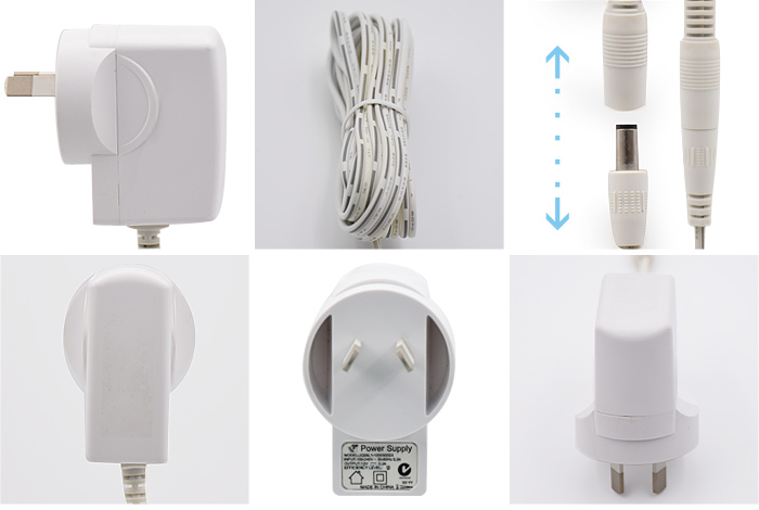 本產品為5V1.2A黑色插墻式澳規開關電源適配器, 輸入頻率為100V-240V,60Hz-50Hz,0.25~1.2A,輸出電壓為4.2~24V,產品通過了UL,GS&CE,PSE,CCC,KC,BS,SAA,UC,STQC,CE-EMC,CE-LVD,FCC-VOC,CB等認證,(V)五級能效通過。接受電源適配器來樣定做